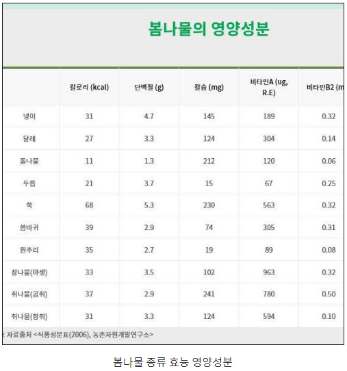 봄나물의 효능에 대해 자세히 살펴보고 지금만 맛볼 수 있는 봄나물 많이 드시길 바랍니다.