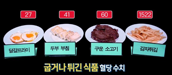 1. 대표적인 예로는 감자튀김, 치킨 등이 있습니다. 높은 온도에서 기름에 튀기면 당독소가 대량으로 생성됩니다. 바삭한 식감을 위해 고온에서 오랜 시간 조리하는 과정에서 AGEs가 빠르게 증가합니다