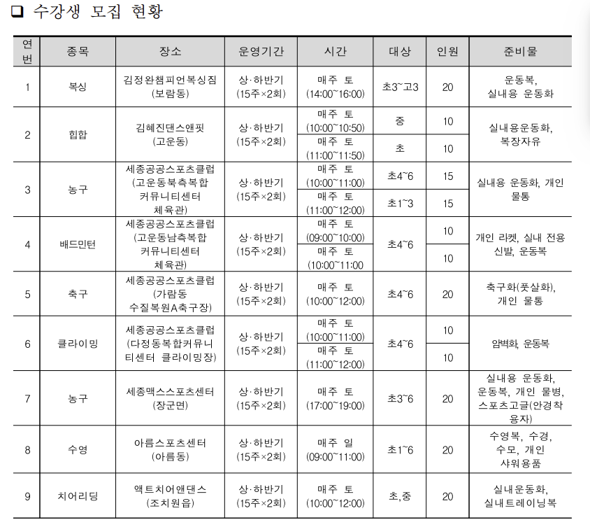 - 세종특별자치시체육회 생활체육팀 (☎ 044-865-4676) -> 내선 3번