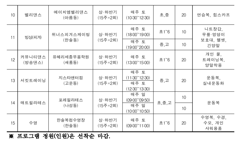 청소년들에게 다양한 스포츠 체험 기회를 제공하고 지원하는 체육활동이니 살펴보시고 관심있으신 분은 신청하시기 바랍니다.