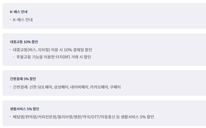 현대카드, 우리카드, 삼성카드, 롯데카드 신한카드에서 K-패스 이용 고객을 위한 특별 이벤트와 추가 혜택을 쏟아내고 있습니다.