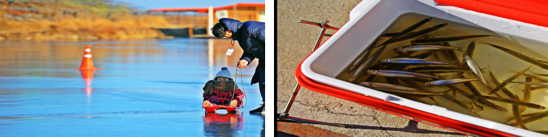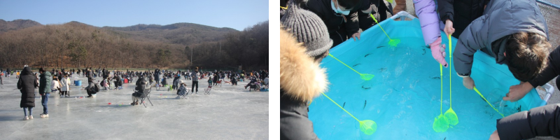 | 이용요금 | 빙어입장료 10,000원 (소인 5,000원) * 얼음뜰채체험 + 얼음썰매 포함 |