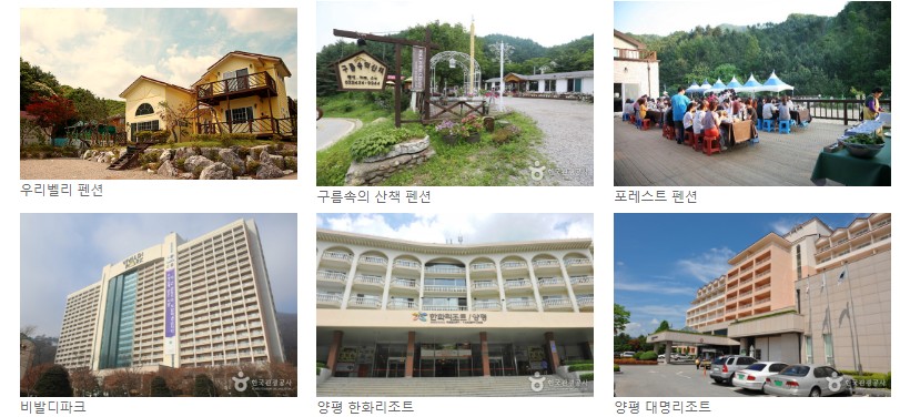 | 양평 한화리조트 (예약하기) | 경기도 양평군 옥천면 신촌길 188 ( 빙어축제장에서 약 30분 정도 소요) |