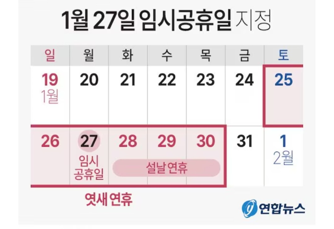 2025년 1월 27일 설연휴 임시공휴일 지정!!! 정보꿀팁!!!